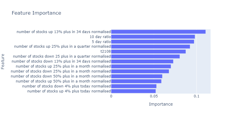 Interestingly, the # of stocks up 13% plus in 34 days is most important. Closely followed by the 10 day ratio.