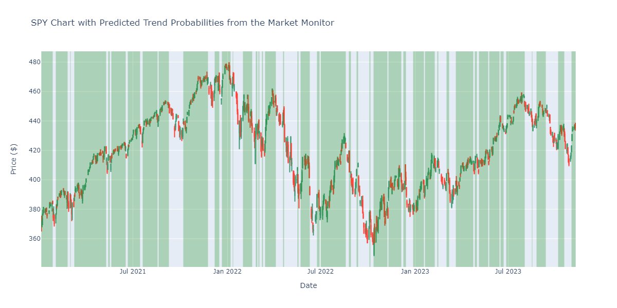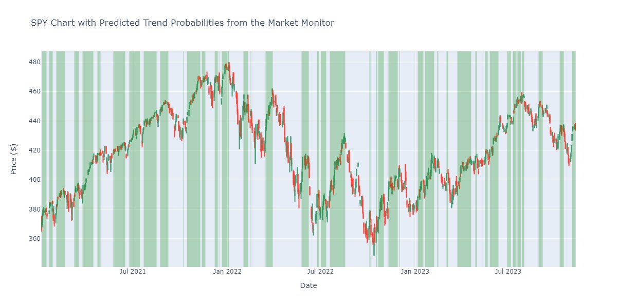So, what the aim is here is to use the Market Monitor to predict when green/red happens.