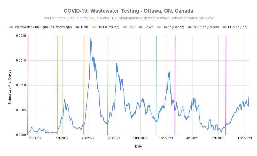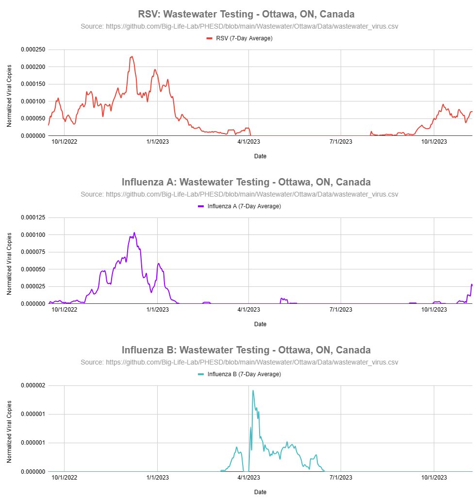 RSV levels in Ottawa wastewater are picking up and Influenza A has now made an appearance but still no sign of Influenza B yet. 4/