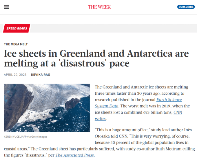 "Nel 2019, le calotte glaciali hanno perso un totale di 675 miliardi di tonnellate, scrive la CNN ". Ecco come dare numeri eclatanti per spaventare la gente nascondendo accuratamente le proporzioni dei fatti. Vediamo la realtà.