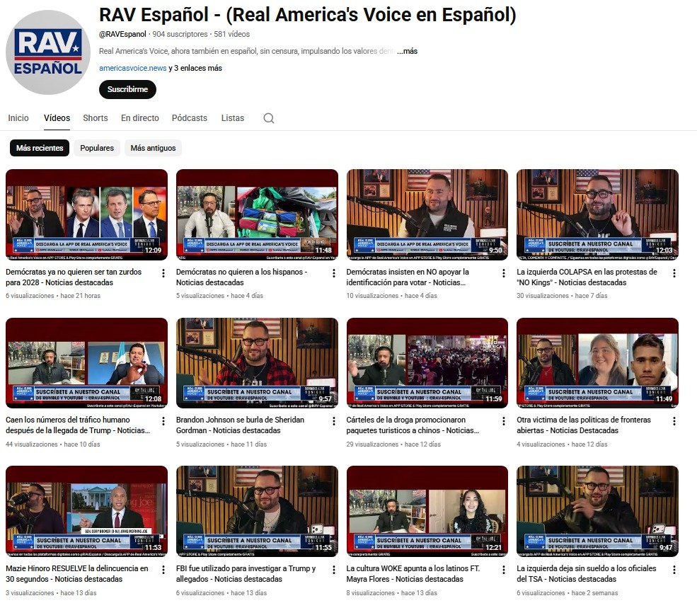 Como se puede comprobar el canal RAV (Real America´s Voice) en español es un erial, no llega ni a 10 visitas por vídeo. Negre ha estado cobrando por esto y por su programa Right News Show, cuyo programa semanal apenas llega a las 1000 visitas y siempre con errores de edición.