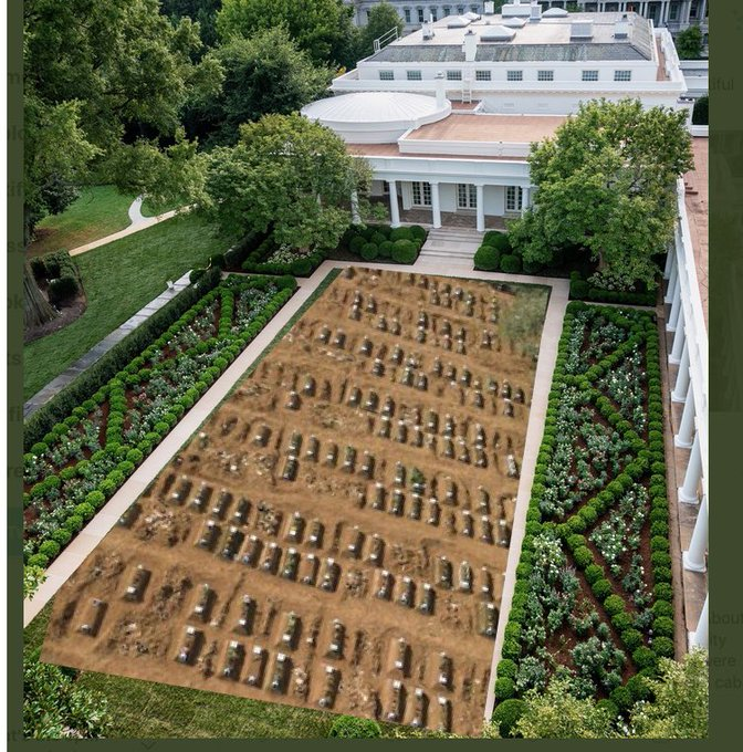 3/6 the history of this garden. But, like the jacket she wore to the migrant children's camp said, "I don't really care, do you?" YES, we DO care Mrs. Melania "I have a shitty attitude" Trump. It now looks like a lifeless cemetery plot, with what look like 3 Ks on each side of