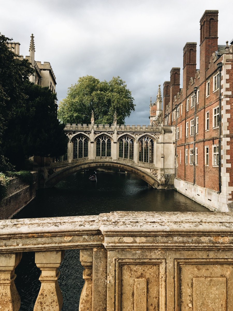A covered bridge crossing the River Cam at St John's College, named after the iconic bridge in Venice. It is said to have been Queen Victoria's favourite spot in all of Cambridge.