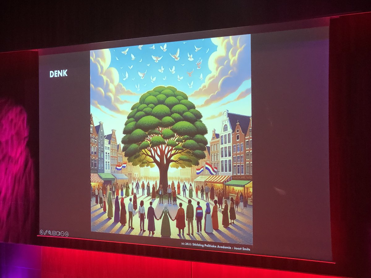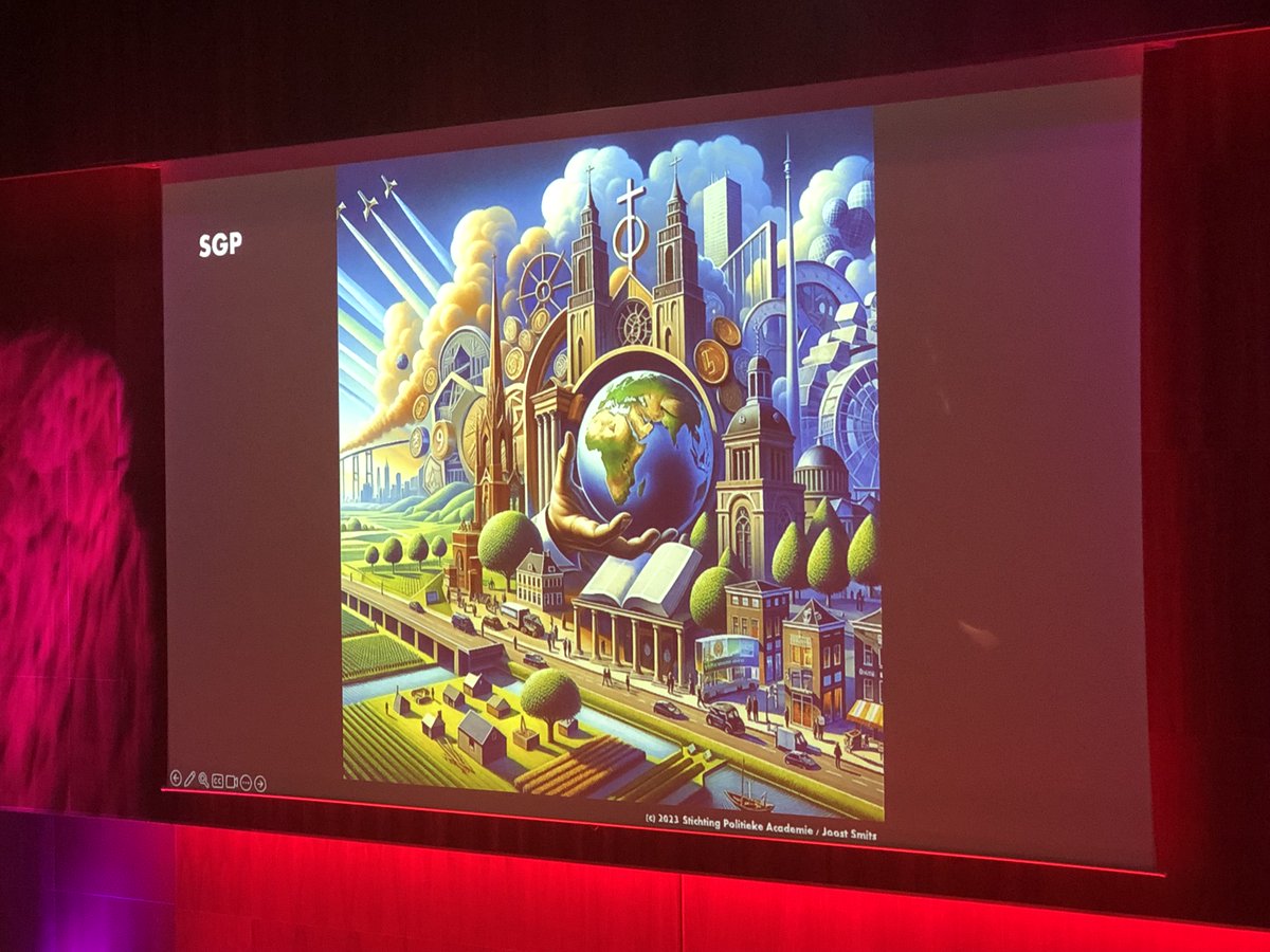 Nu Joost Smits van de Politieke Academie. Hij doet nu een PR-praatje. Hij gaat plaatjes laten zien op basis van AI. Dit representeert de SGP. [Geen idee waarom we dit moeten zien]