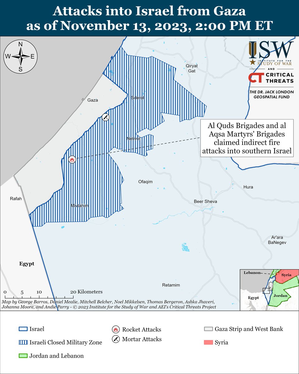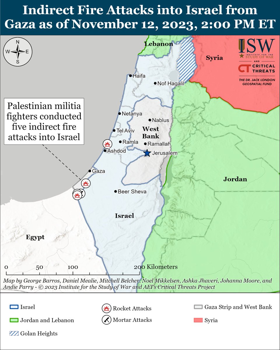 3/ Palestinian militias conducted three indirect fire attacks into Israel on November 13. isw.pub/IranUpdate1113…