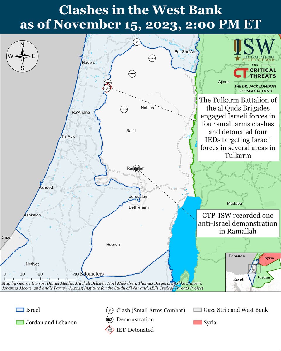 CTP-ISW recorded 3 clashes between Palestinian fighters and Israeli forces in the West Bank, primarily in Tulkarm