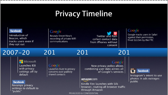 This is the timeline in the front of the deck. Recognize this pre-dates Facebook's leaking much of our personal data to the globe, $5B in SEC/FTC fines, YouTube's privacy settlements, millions in EU fines, etc etc. So they thought this was bad in 2013. Yikes. /3