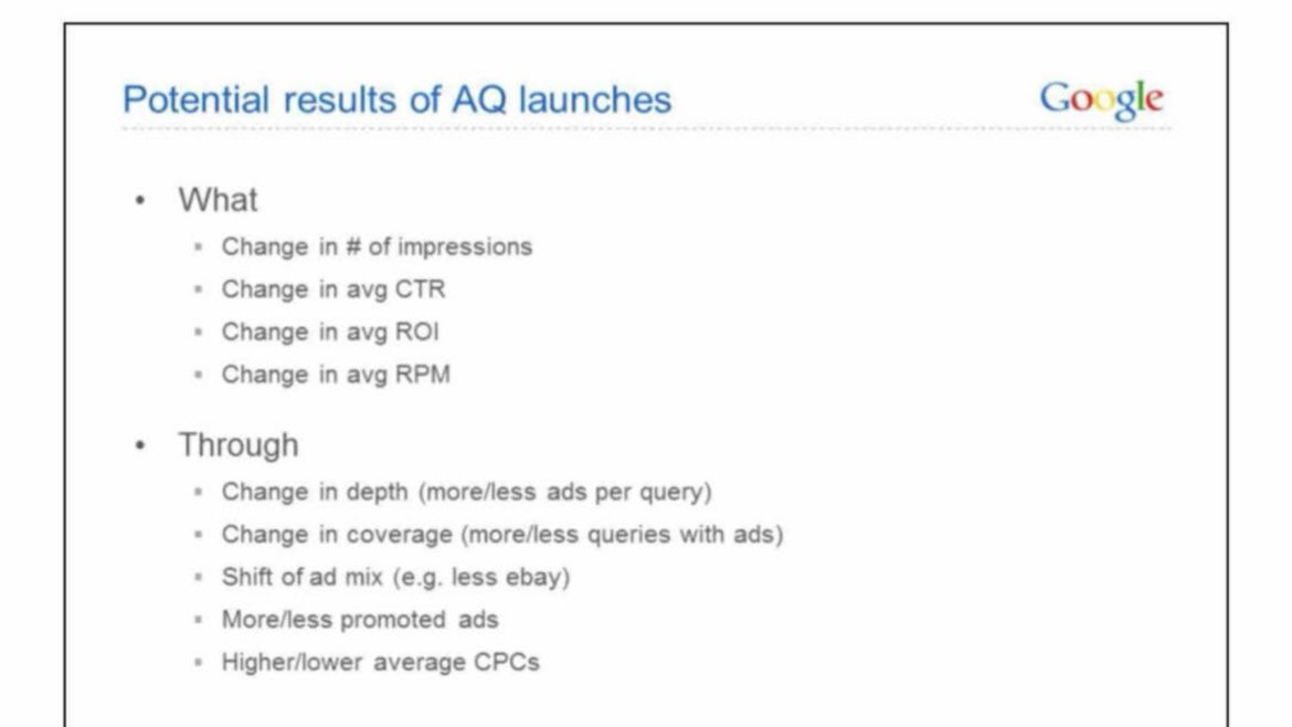 Pretty clear why Google didn’t want this deck shared. If we do X then we change Y (revenue, return on investment, click thru rate)… the “shift of ad mix (eg less eBay) is certainly interesting to see in writing. /3