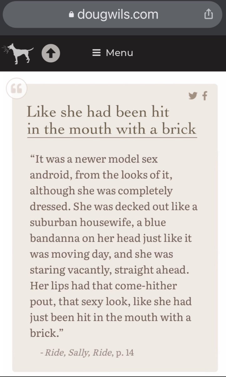 Quote by Doug Wilson, founder of NSA. Wilson apparently likes this quote so much, he has used it several times in articles. Wilson apparently thinks a woman who has been hit in the mouth with a brick looks “sexy.”
