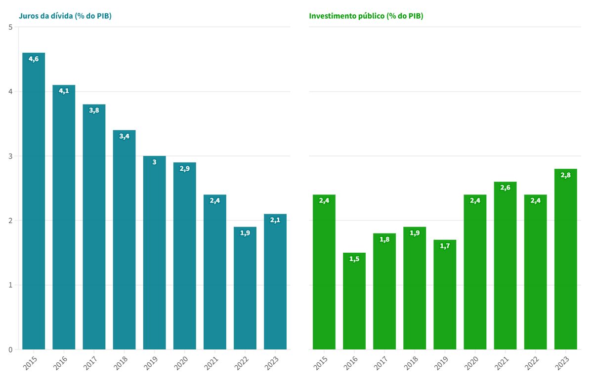 E, recuando ainda mais, uma versão animada da evolução das rubricas da despesa entre 1995 e 2022. Novamente, juros e investimento público são as mais interessantes para contar a história económica deste período com fases muito diferentes