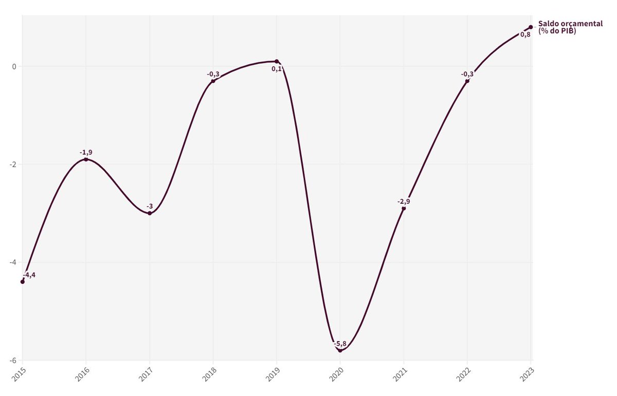 É o menos interessante, mas é obrigatório começar por aqui. A evolução do saldo orçamental desde 2010, de um défice de dois dígitos até ao primeiro excedente da democracia