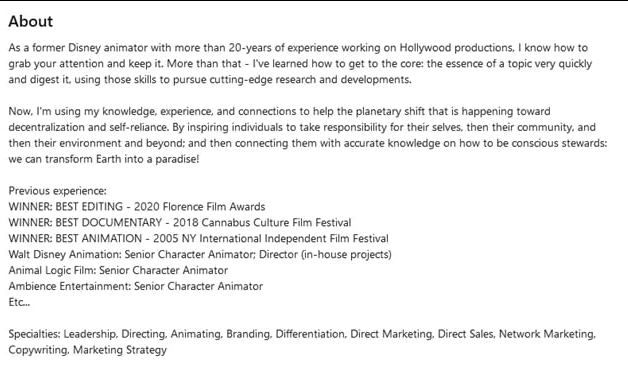 Why would someone in the film industry be involved in agriculture? It was because of this question that I set out to find out the identity of the other co-founder. Because this information was so hard to find, I am going to leave his name out of this article. In my opinion, if Carbon Capture Shield wanted that information widely known, they would put it out themselves, such as on their website. Since it is not commonly known, I am going to respect this person's privacy and not doxx them.