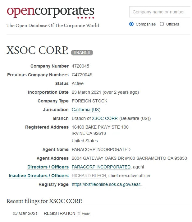That brings us to April 5, 2018 and the creation of XSOC Corp.