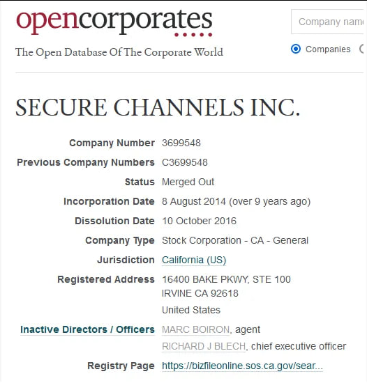 However, this brings me to his career at Secure Channels Inc, where Richard Blech is listed as the CEO from June 2013 until April 2020.