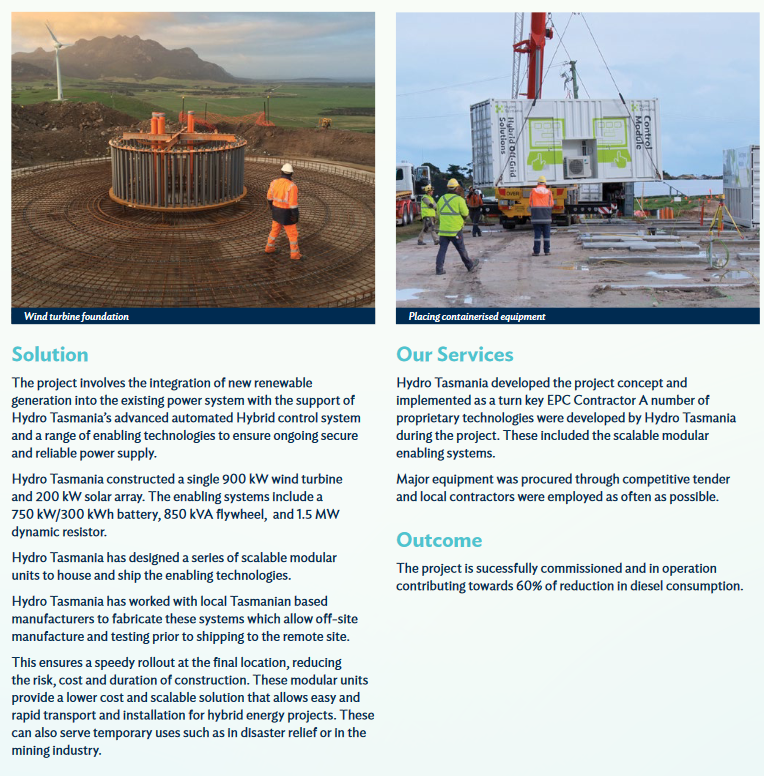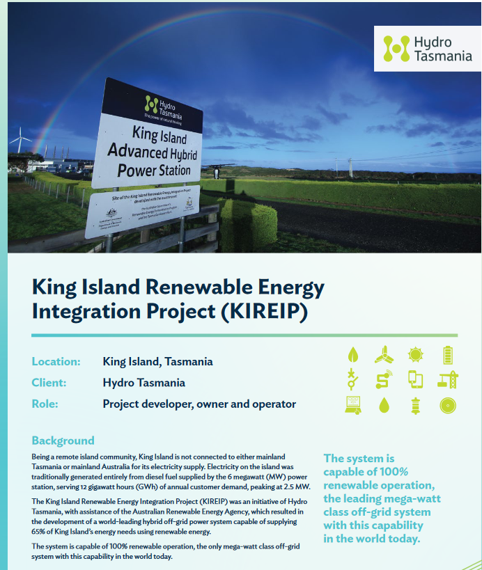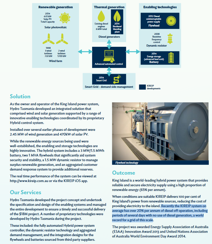 2️⃣ King Island, une autre île au nord de la Tasmanie, elle aussi non interconnectée, est un autre exemple. Le taux EnRv annuel est aux alentours de 65 % (100 % fioul auparavant).