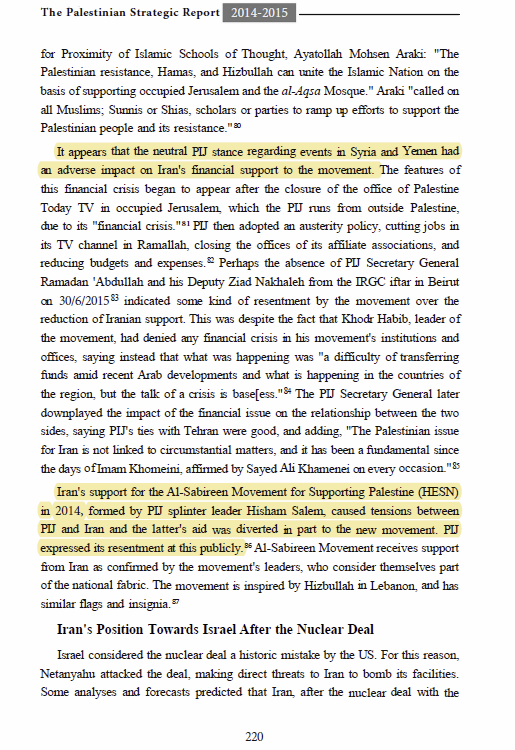 Iran naturally seeks to have proxy groups, because both PIJ and Hamas either were neutral or rejected Iran's policies, they founded the Sabireen Movement.