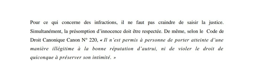 24 pages de verbiage affligeant où la présomption d'innocence et le droit canonique sont utilisés pour dissuader subtilement de saisir la justice :