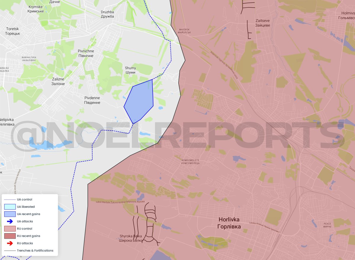 β‘οΈThere were already some reports, but now geolocated footage shows slight advances north of Horlivka. These area's were always considered a gray zone. The AFU managed to take control of a large spoil tip, giving a strategic overview of Horlivka.