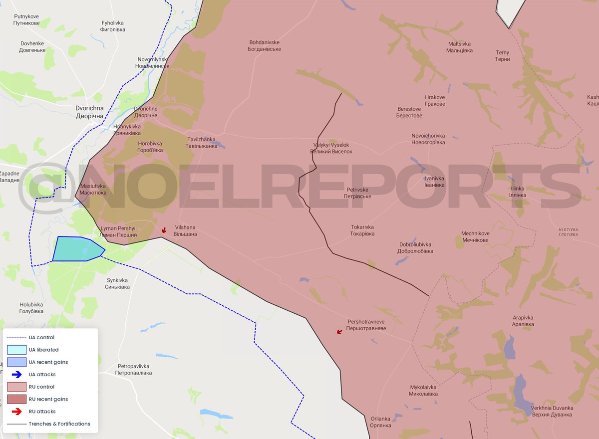 β‘οΈAFU gains previously made in the forest west of Lyman Pershyi have been reduced and changed to contested. Fights towards Synkivka and south of Pershotravneve are reported. Russians haven't made any breakthroughs as of yet but fighting continues unabated.