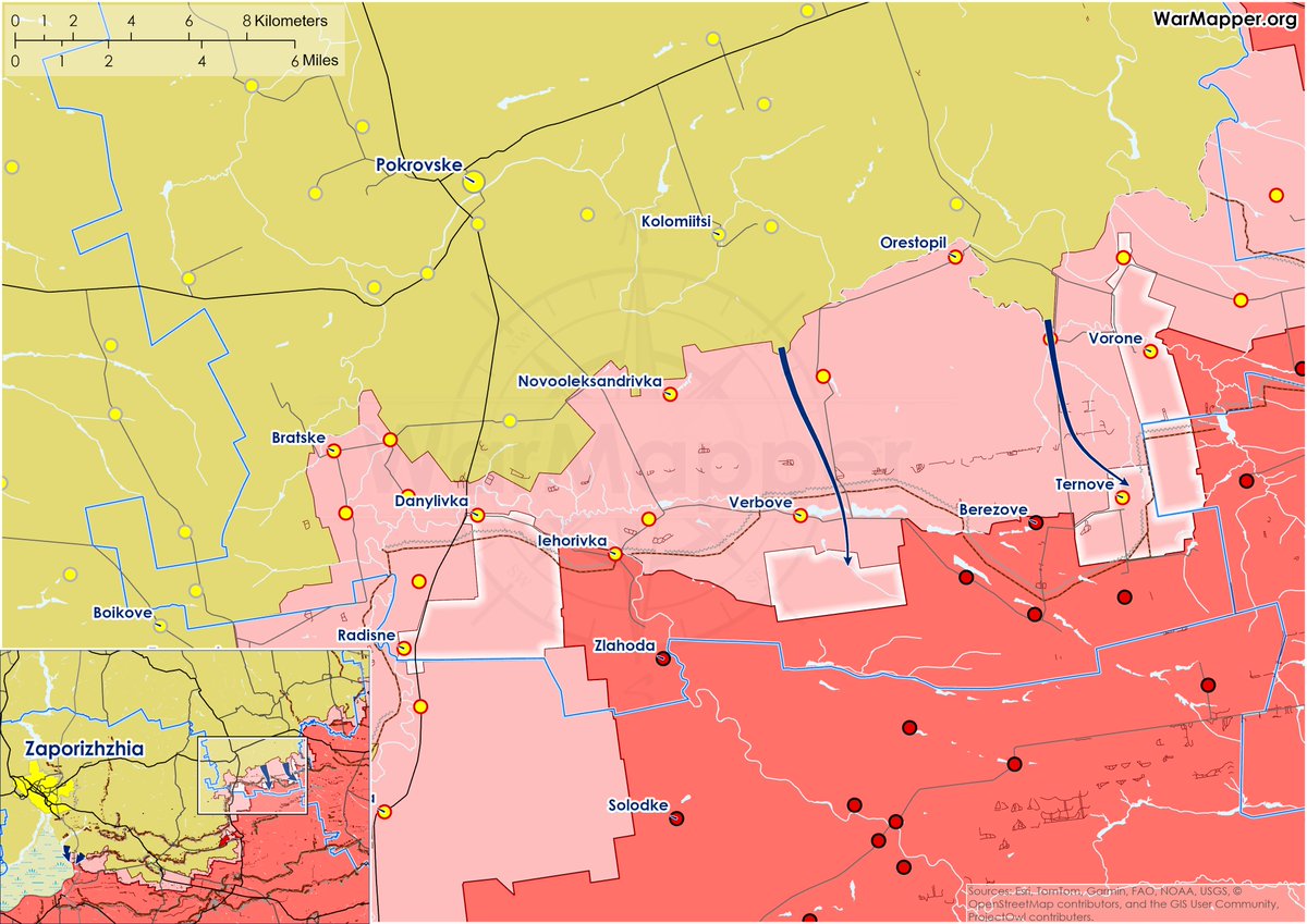 Meanwhile, the πΊπ¦ attacks south of Pokrovske allowed their forces to push the area of π·πΊ control behind the settlement of Ternove.