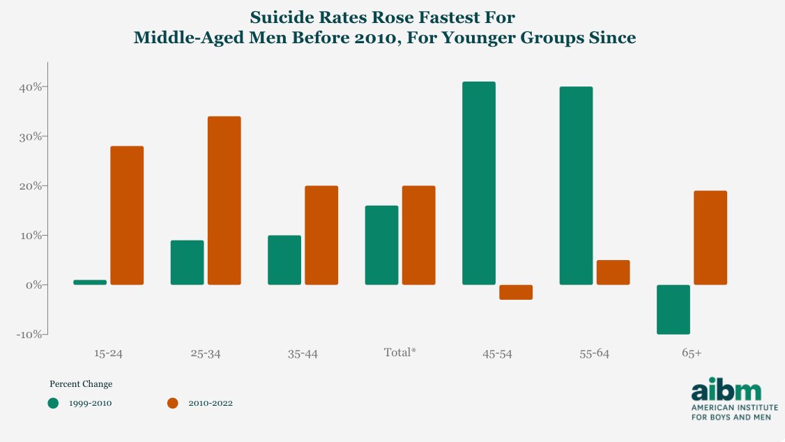 Since 2010 the rise in suicide has been among YOUNGER men, up by 34% for men aged 25-34 just in that short period: aibm.org/research/male-…