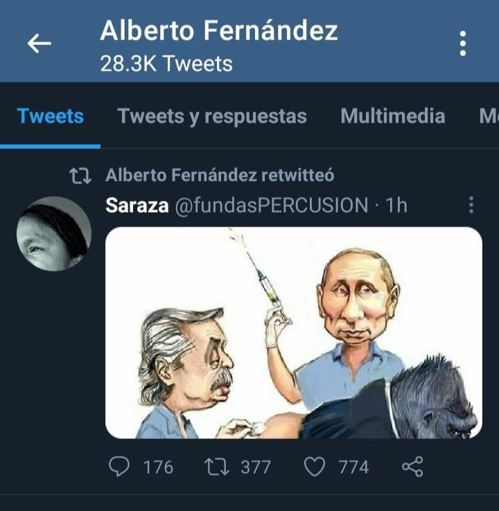 Cuando Alberto Fernández retuiteó la caricatura suya y de Putin vacunando a un gorila y el "gordito lechoso" para Jonatan Viale
