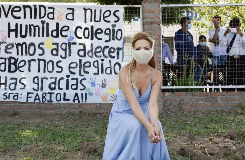 Cuando Fabiola fue vestida de princesa a Chaco y posó al lado de un cartel con errores de ortografía