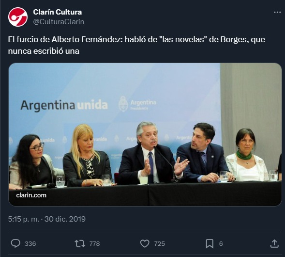Cuando en la presentación del Plan Nacional de Lecturas, Alberto Fernández habló de "las novelas" de Jorge Luis Borges, alguien que nunca escribió una