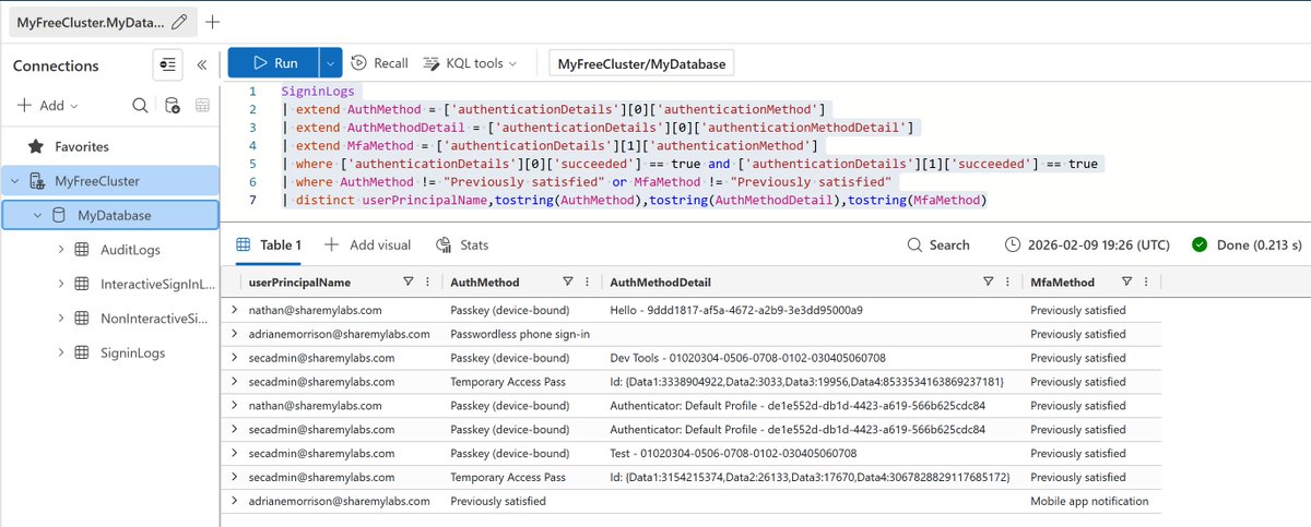 Ever need to find out what Entra authentication methods your users are using but don't have Log Analytics/Sentinel? :)