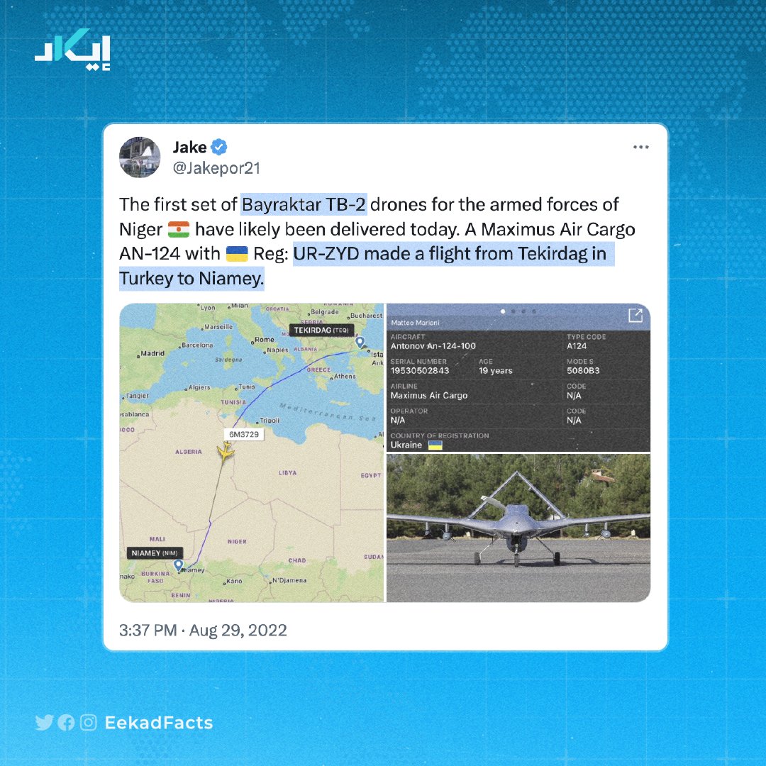🔻كما وجدنا ارتباطها بعمليات شحن يُرجح أنها لنقل مسيّرات من تركيا إلى النيجر في أغسطس 2022.