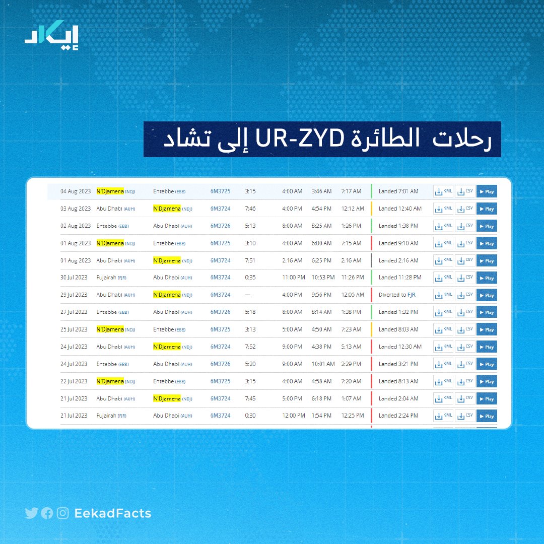 🔻الطائرة ذاتها "UR-ZYD" رصدنا تكرار رحلاتها من يوليو وحتى أكتوبر 2023 إلى مطار أم جرس في تشاد.
