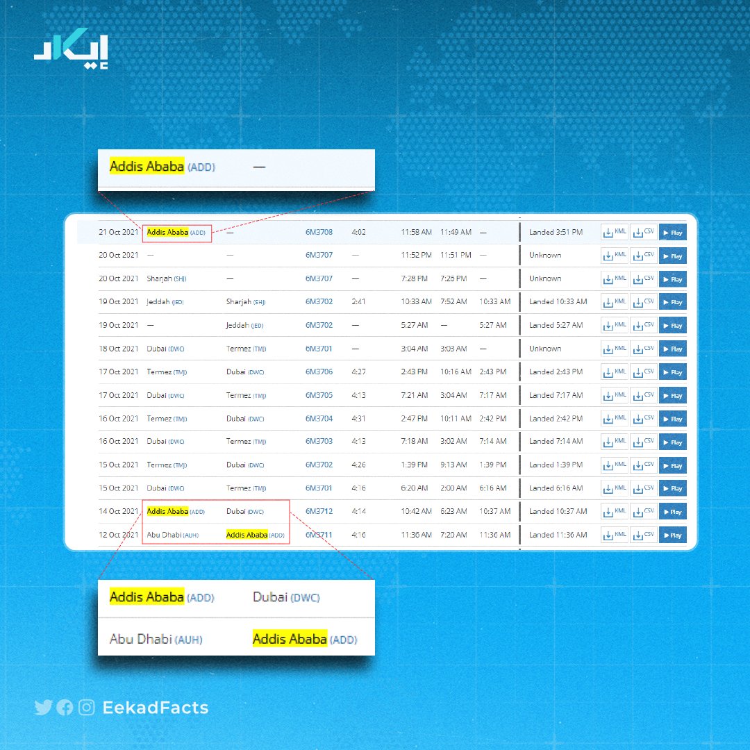 🔻هذه الطائرة قامت برحلات إلى إثيوبيا عام 2021 تزامنًا مع الدعم الإماراتي لأديس أبابا، خلال صراع الحكومة مع قومية التيغراي.