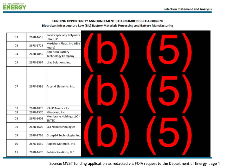 24/34 We sent Freedom of Information Act (FOIA) requests to various parts of the U.S. government seeking communications between DOE and MVST, but we received responses that were completely blacked out: