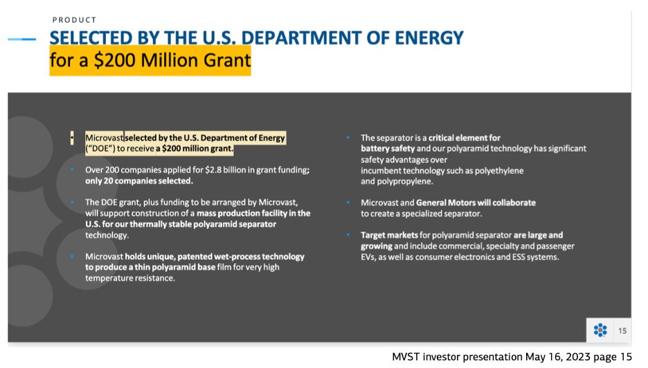 27/34 On May 16, 2023, MVST was still telling investors that it would receive the grant:
