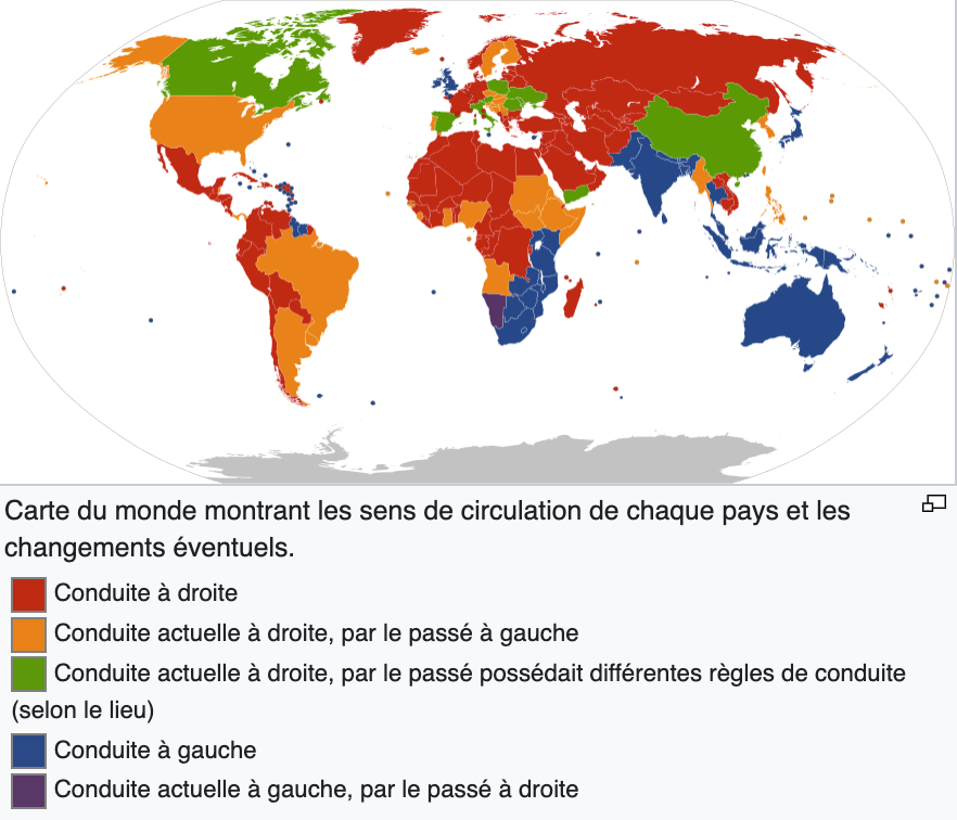2/10 1ere observation le volant est à droite ! Nous sommes donc dans un pays qui conduit à gauche (en bleu sur l'image)