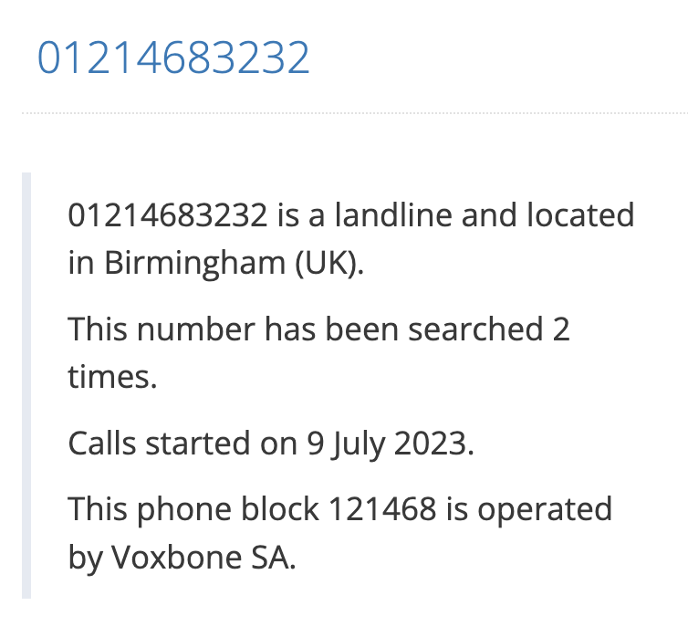 3/10 Sur l'image, on voit distinctement un numéro de téléphone sur ce qui semble être un panneau publicitaire. En cherchant ce numéro sur Google on remarque que 0121 est le code pour la ville de Birmingham