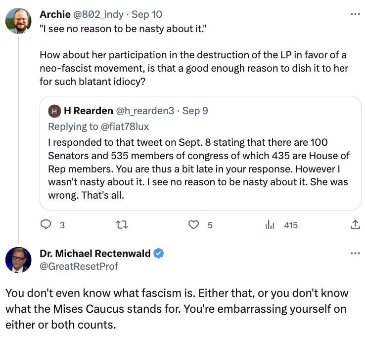 Rectumwart is the one embarrassing himself by supporting alt-right simp Hoppe, Rockwell's Mises Institute, Heise's #MisnamedCaucus , and Moscow McArdle's Kremlintarian Party.