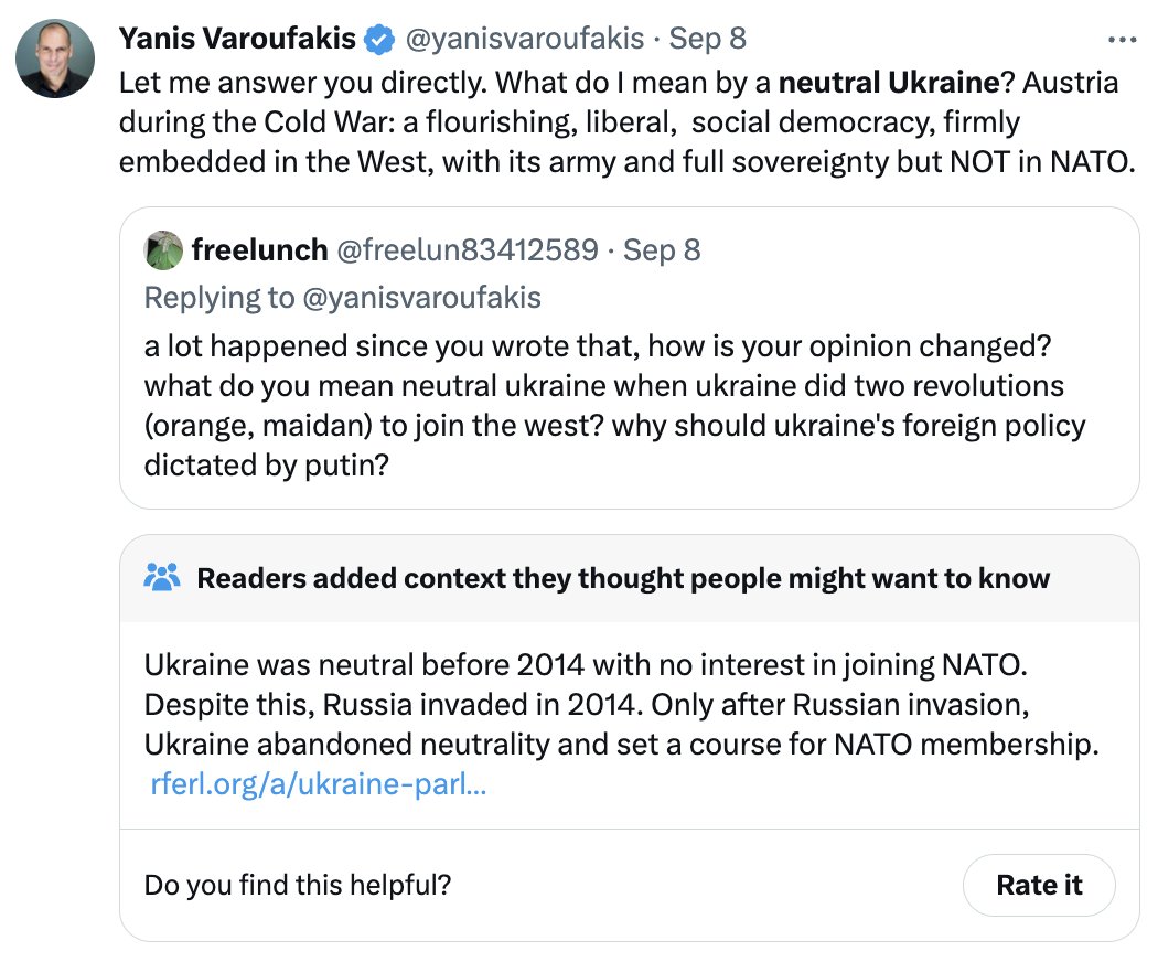 But no worries, Varoufakis is "equally anti-Putin and anti-NATO" and "working toward a just Peace" 🤡 #bothsidesism