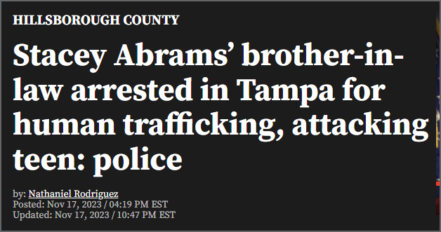 Last Friday, a man named Jimmie Gardner, the brother-in-law of Stacey Abrams, was arrested in Tampa, Florida on charges of human trafficking, lascivious touching of a minor, and battery.