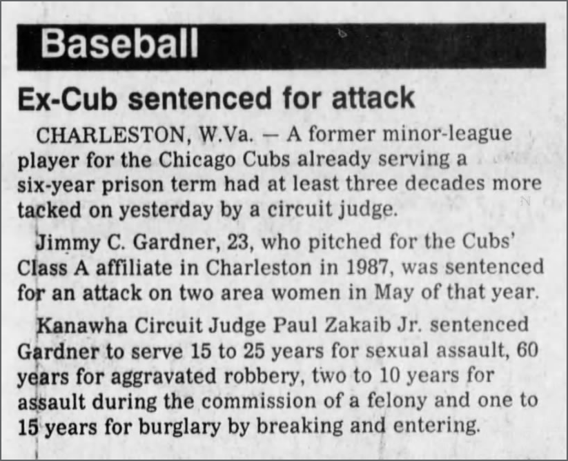 "Jimmie C. Gardner was a former professional baseball player for the Chicago Cubs. Gardner played in the minor leagues from 1984 to 1988, but during his season in 1987, his world turned upside down."