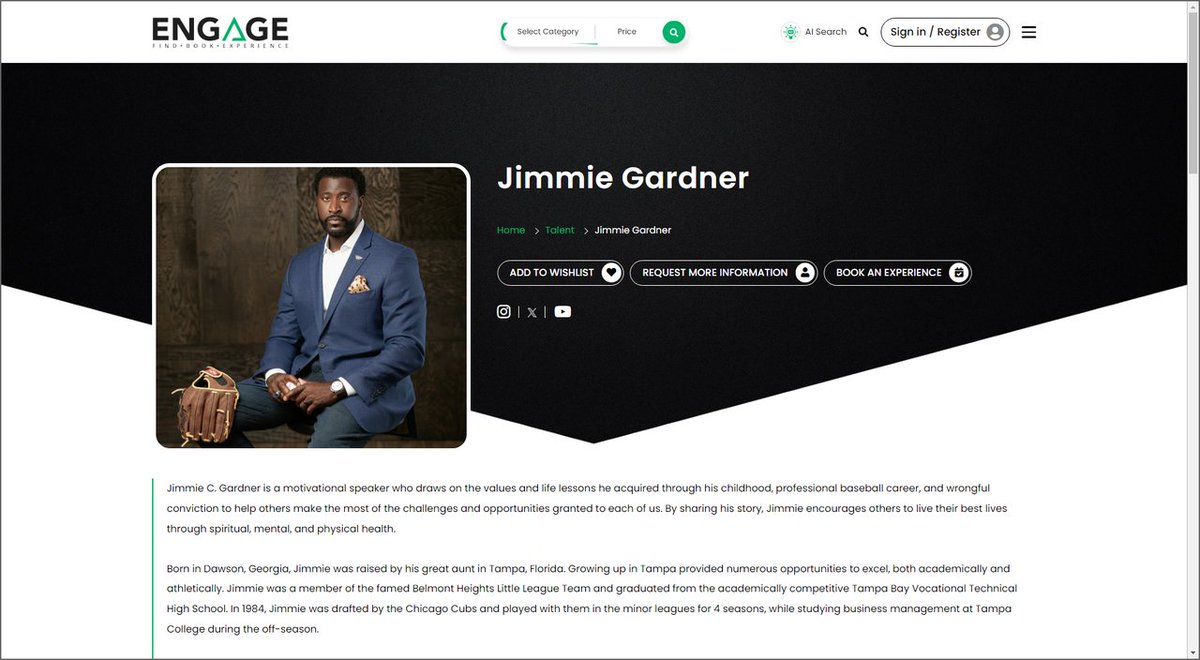 In a profile on Engage, which is a hub meant to "find, book, & experience the industry's best speakers," you can find a profile for Jimmie. (As of the morning of 11-21-2023.)
