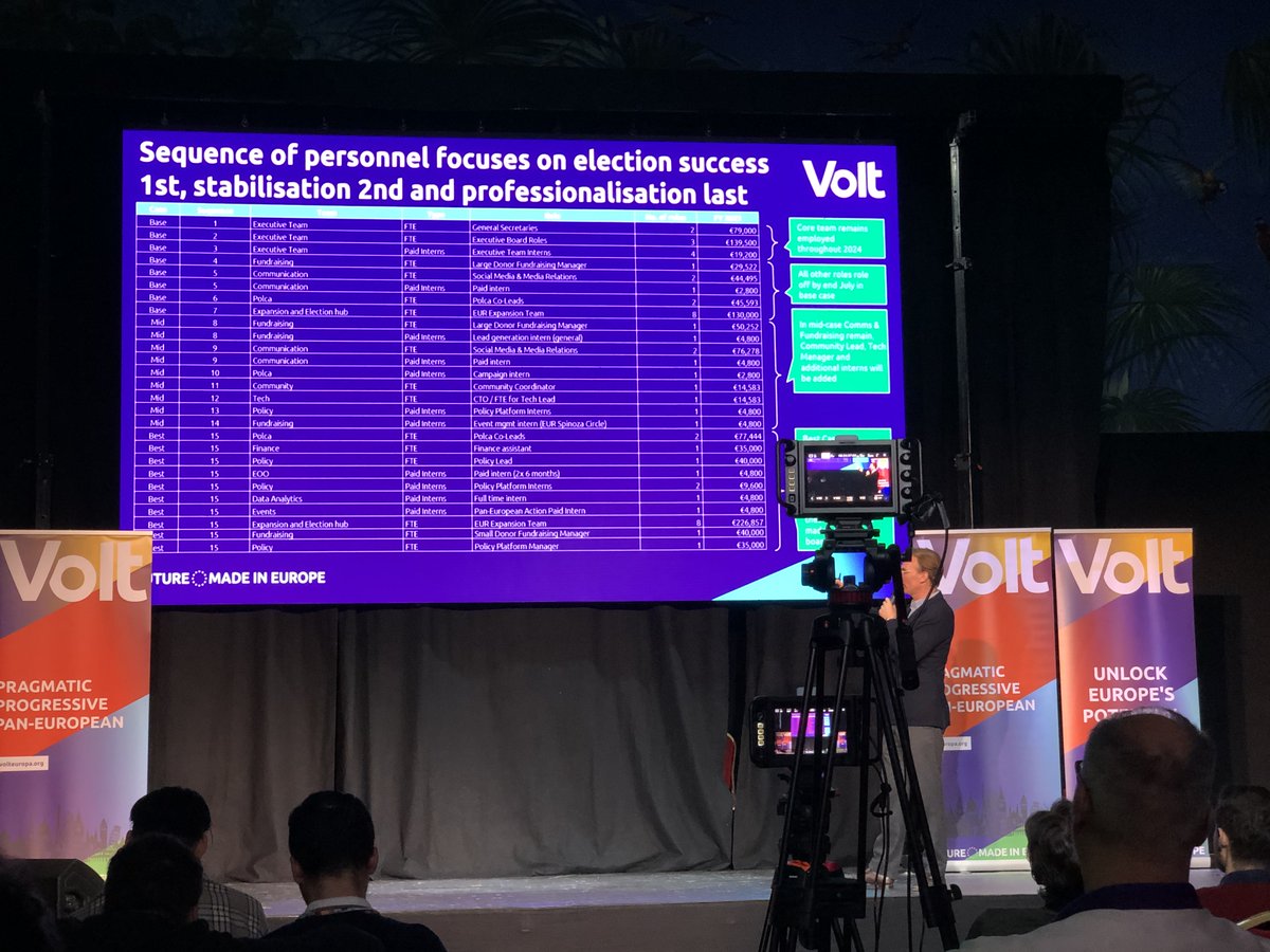 Je merkt dat Volt nog steeds een management-organisatie is en geen partij. Gedetailleerde presentatie over financiën. Je zou het ook schriftelijk kunnen doen, denk je dan.