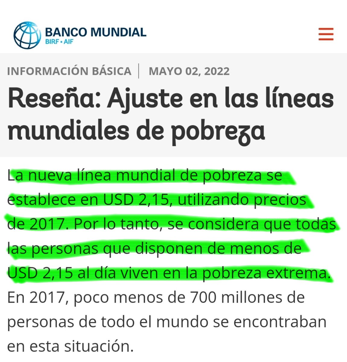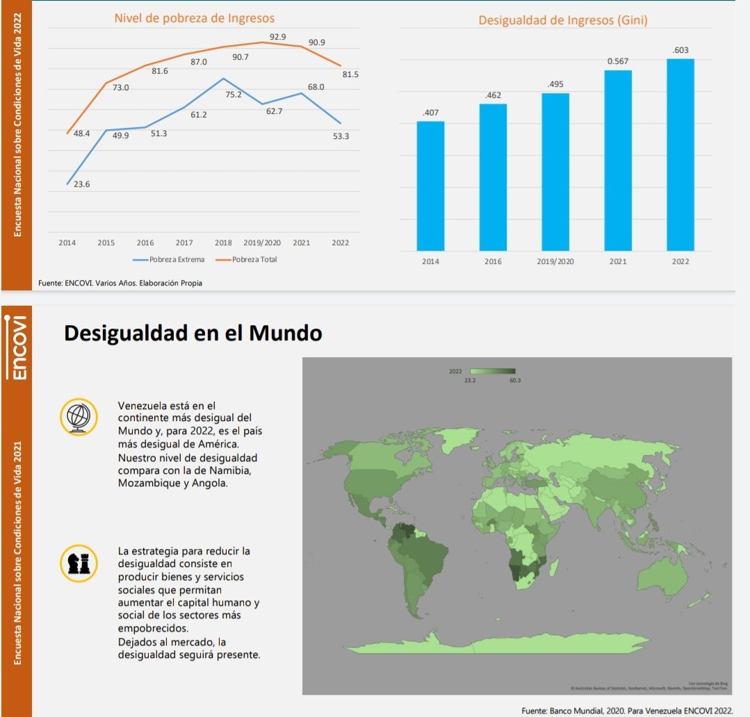 Venezuela tiene una pobreza extrema de 53.3%. Es decir, más de la mitad de la población no logra alcanzar un poder adquisitivo de al menos 2.15 dólares al día, como lo establece el @WorldBank .