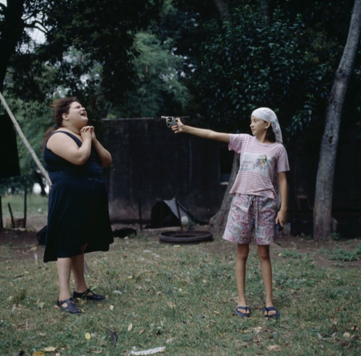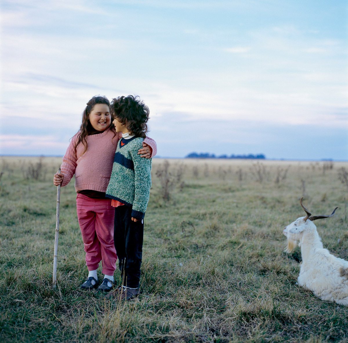 Las dos niñas, dos primas que se llamaban Guille y Belinda, tenían 9 y 10 años cuando conocieron a Sanguinetti, y en un principio la fotógrafa les pedía que se apartaran para poder hacer fotos a los animales de la finca donde vivían.