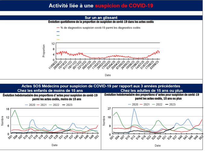 S'agissant des actes SOS Médecins, entre 5 et 6% concernent désormais une "suspicion de Covid". Niveau record depuis au moins un an.