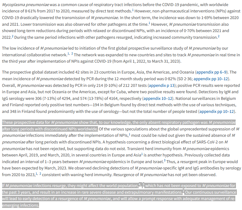 Comme tous les virus et bactéries, mycoplasma pneumoniae a très peu circulé quand nous étions confinés puis masqués au début du Covid.