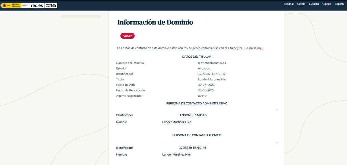 5. Pero lo que me ha chocado bastante es que el dominio al que referencia la cuenta de Twitter, la creo un diputado de "Elkarrekin Podemos" por Vizcaya.