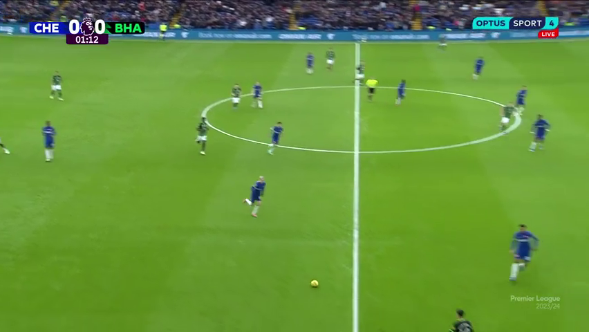 The intent from Chelsea early on was of course to Press Brighton(Situational) and win the ball high enough, but stay in their midblock to deny space in the half spaces as Brighton love to play through there and blocking BHA's central passage was the theme in the half for CFC