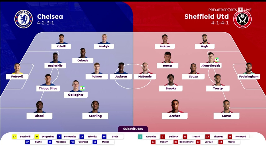 Chelsea lined up in their regular 4-2-3-1 formation with a CB-dominated back 4, with players out injured. Chris Wilder stuck with the 4 at the back formation that Paul Heckingbottom has been using as opposed to the 3 he used at his last spell at Sheffield Utd.