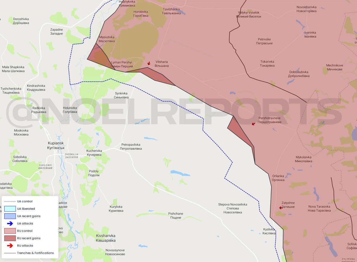 ➡️A revision of the areas under Russian control near both Pershotravneve and Synkivka/Lyman Pershyi. To date, my latest maps have not proven to represent the current situation so it needed some revision.